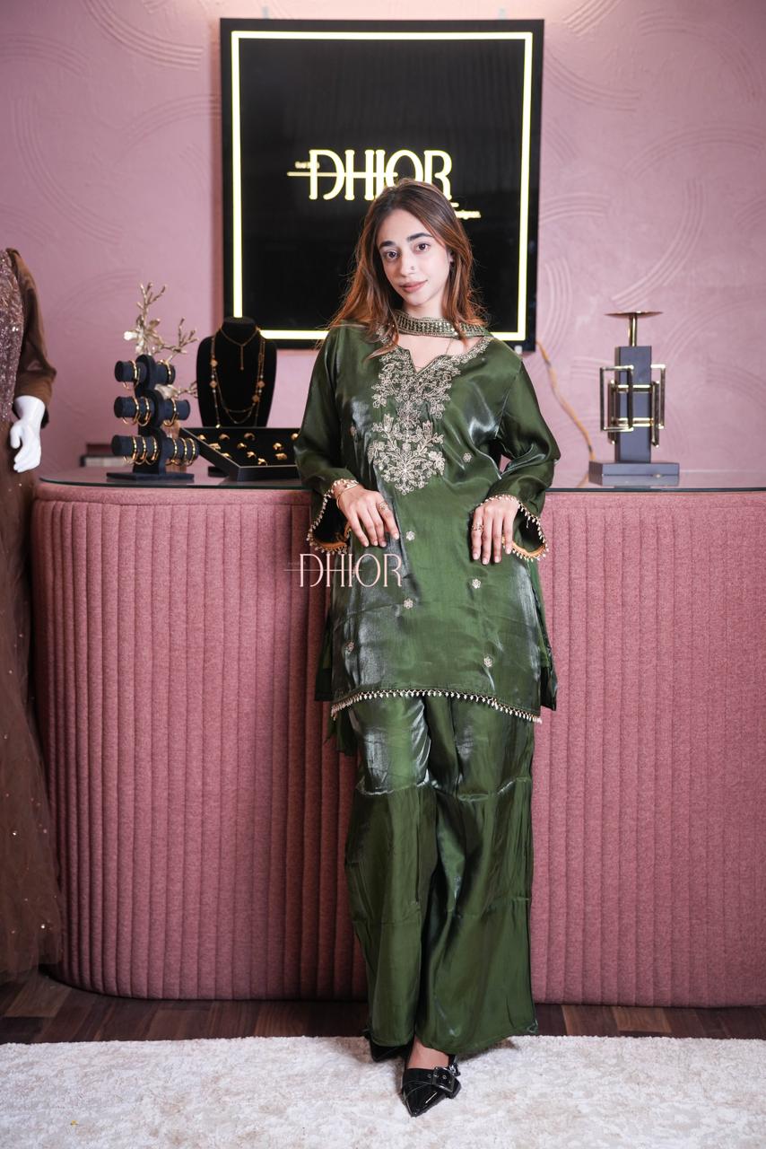 We specialize in Mughal-inspired party wear including elegant codsets, graceful shararas, and intricately embroidered Kashida salwar suits. Our designs blend traditional craftsmanship with modern silhouettes, perfect for weddings, festive occasions, and special celebrations.